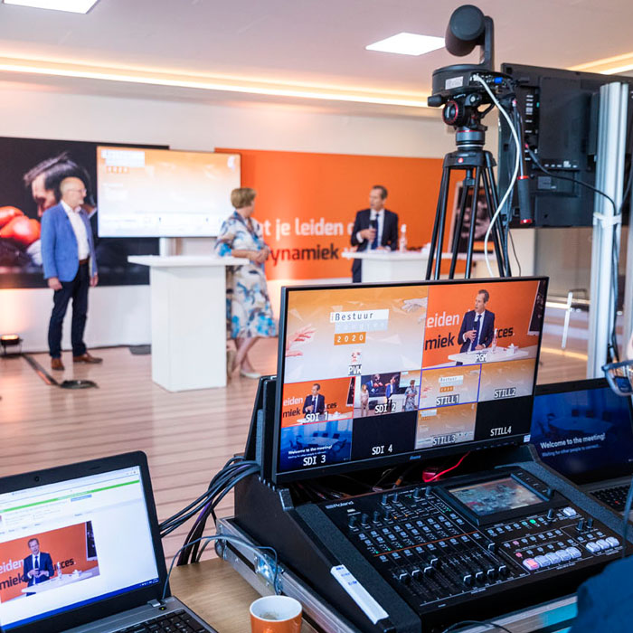 Soms lukt het niet om grote groepen mensen persoonlijk te kunnen toespreken en dan is het fijn om te weten dat je kunt uitwijken naar andere, innovatieve, mogelijkheden. Zoals hybride bijeenkomsten. Wij werken met een vast team dat ons ondersteunt om de meest grote evenementen neer te zetten door webcasting of livestreaming. Informatie delen naar een groot aantal mensen is hiermee geen probleem meer! Wil jij meer weten over onze hybride mogelijkheden? Neem gerust contact met ons op.