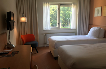 De ligging van deze comfortabele hotelkamers is zeer gunstig. Je hebt direct uitzicht op de groene omgeving van de Veluwezoom. De kamers zijn licht en ingericht met twee uitstekende eenpersoons M-line bedden. Bekijk hier één van onze standaard kamers.